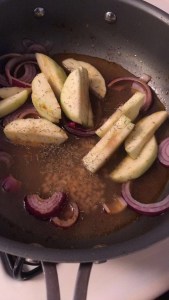 Pork chops with sautéed apples, Gouda mashed potatoes